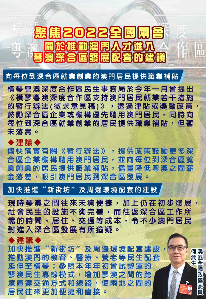 2022.03.15關於推動澳門人才進入琴澳深合區發展配套的建議