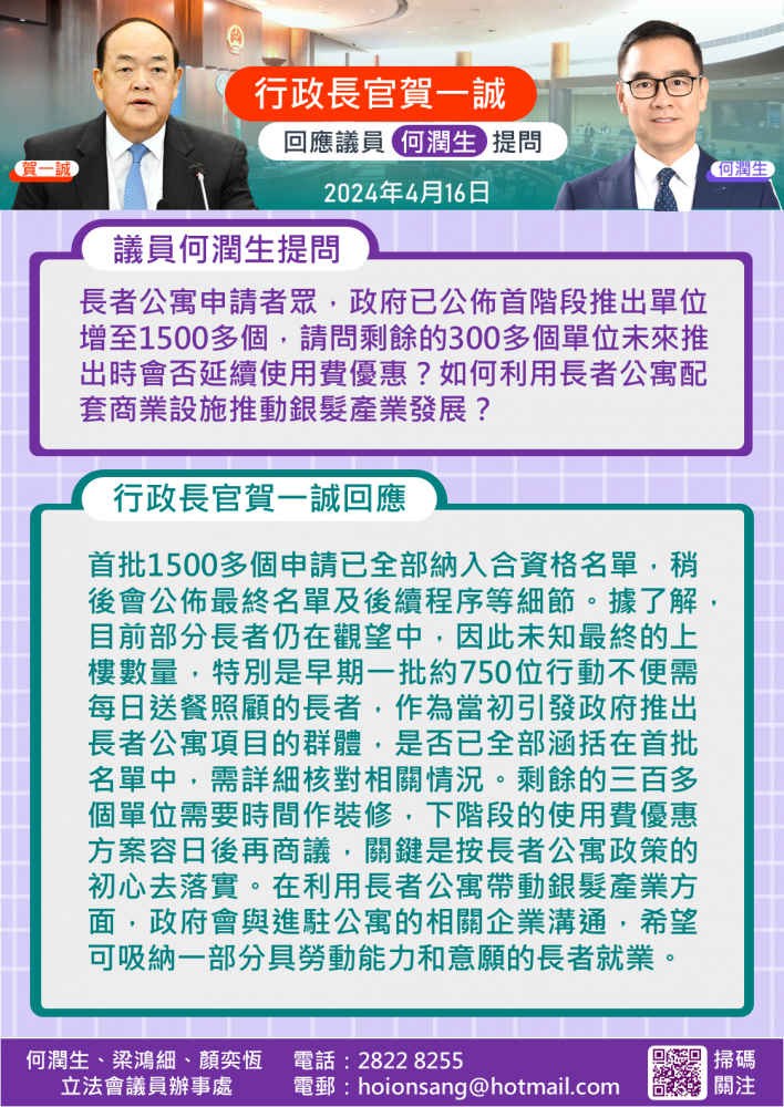 2024.04.16行政長官賀一誠回應議員何潤生提問