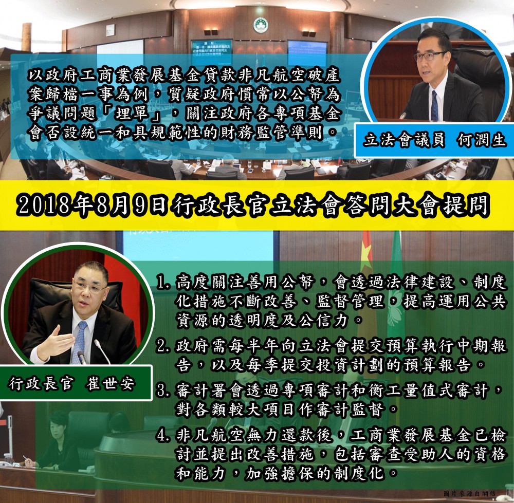 2018年8月9日行政長官立法會答問大會提問